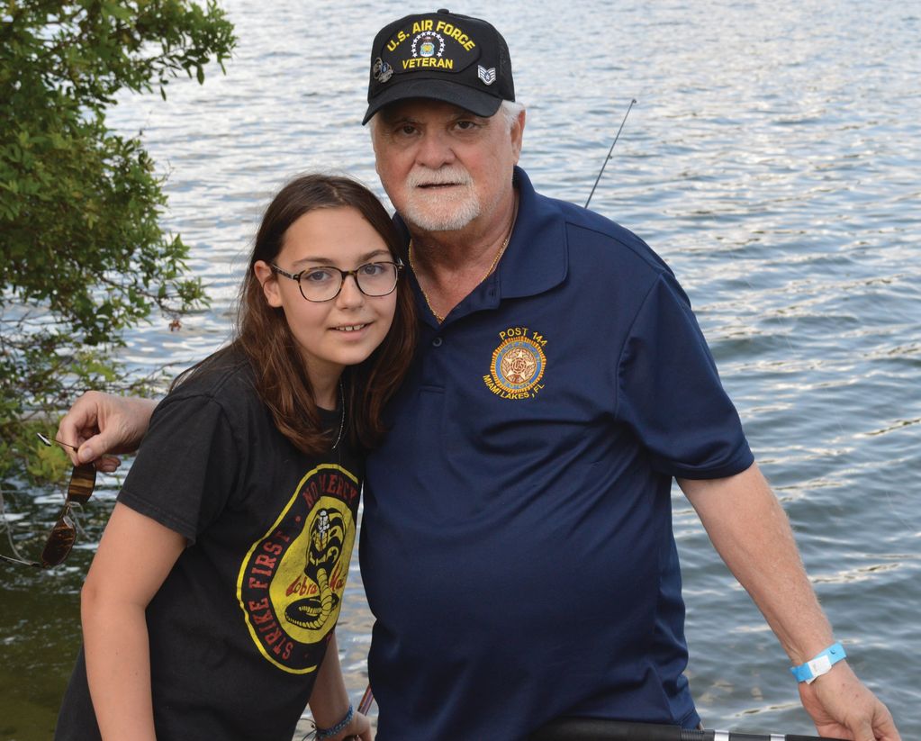 American Legion Post 144 member Bob Spano of Miami Lakes, at left, with his granddaughter Stella Spano, 11, stop to pose for a photo during the Fishing with America’s Finest